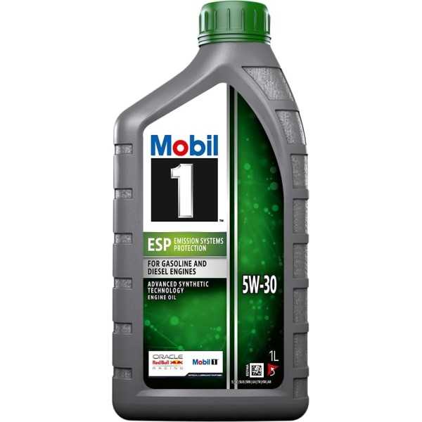 Mobil 1tm ESP 5W-30 es un avanzado aceite totalmente sintético para motores diseñado para ayudar a proporcionar poder de limpieza, protección contra el desgaste y desempeño en general excepcionales. Mobil 1 ESP 5W-30 ha sido expertamente diseñado para ayudar a prolongar la vida útil y mantener la eficiencia de los sistemas de emisiones en automóviles con motores tanto diésel como de gasolina. Mobil 1 ESP 5W-30 cumple o excede los requisitos de muchos de los estándares más importantes de la industria y de los fabricantes de automóviles exigidos para los más nuevos motores diésel y de gasolina modernos para automóviles de pasajeros.