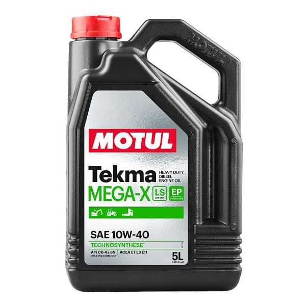 TEKMA MEGA-X 10W-40 LS EP es un aceite de motor semisintético con bajo contenido en SAPS, diseñado para motores diésel modernos de servicio pesado con sistema EGR (Exhaust Gas Recirculation) y/o SCR (Selective Catalytic Reduction), con o sin DPF (Diesel particulate Filter). Cumple con las normas de emisiones Euro VI, TIER 5 y Stage V, ayuda a proteger los sistemas de control de emisiones, a la vez que proporciona una protección duradera del motor.